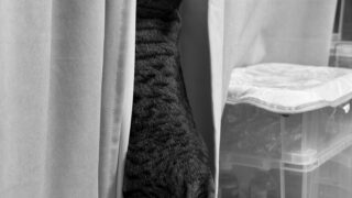 iPhone 17 Pro 1/50s f/1.8 ISO200 48mm ミー姉さん、何してるの?そんな狭いところに入って、怪しいよ。 うるさいわね。アタシはパトロール中よ。外の世界の動きをチェックしているの。あんたには関係ないでしょ。 ...
