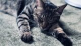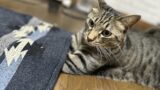 あら、トラ君。ママの脱ぎ捨てたパーカーの隙間からお顔だけ出して。モグラさんの真似?