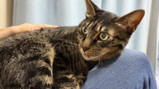 ママの膝の上でくつろぐトラ君。ここはいつも争奪戦。